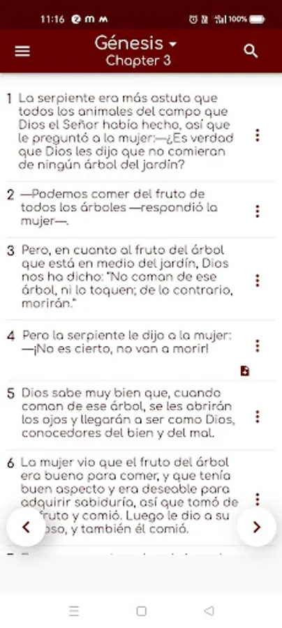 La aplicación cuenta con una interfaz muy amigable que te permitirá leer en cualquier momento la Biblia en español y alimentar el alma con sus hermosos versículos y las enseñanzas de nuestro señor Jesús. Puedes leer en cualquier momento en tu celular y compartir la sagrada escritura con quien desees. La Biblia no necesita conexión a Internet para leer.
