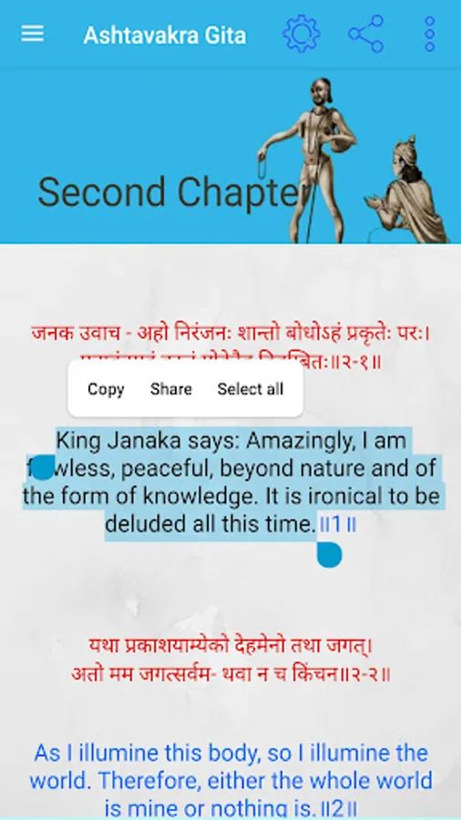 The Ashtavakra Gita is classical Advaita Vedanta scripture. It is written as a dialogue between the sage Ashtavakra and Janaka, king of Mithila. The Gita insists on the complete unreality of the external world and absolute oneness of existence. It does not mention any morality or duties, and therefore is seen by commentators as 'godless'. It also dismisses names and forms as unreal and a sign of ignorance.