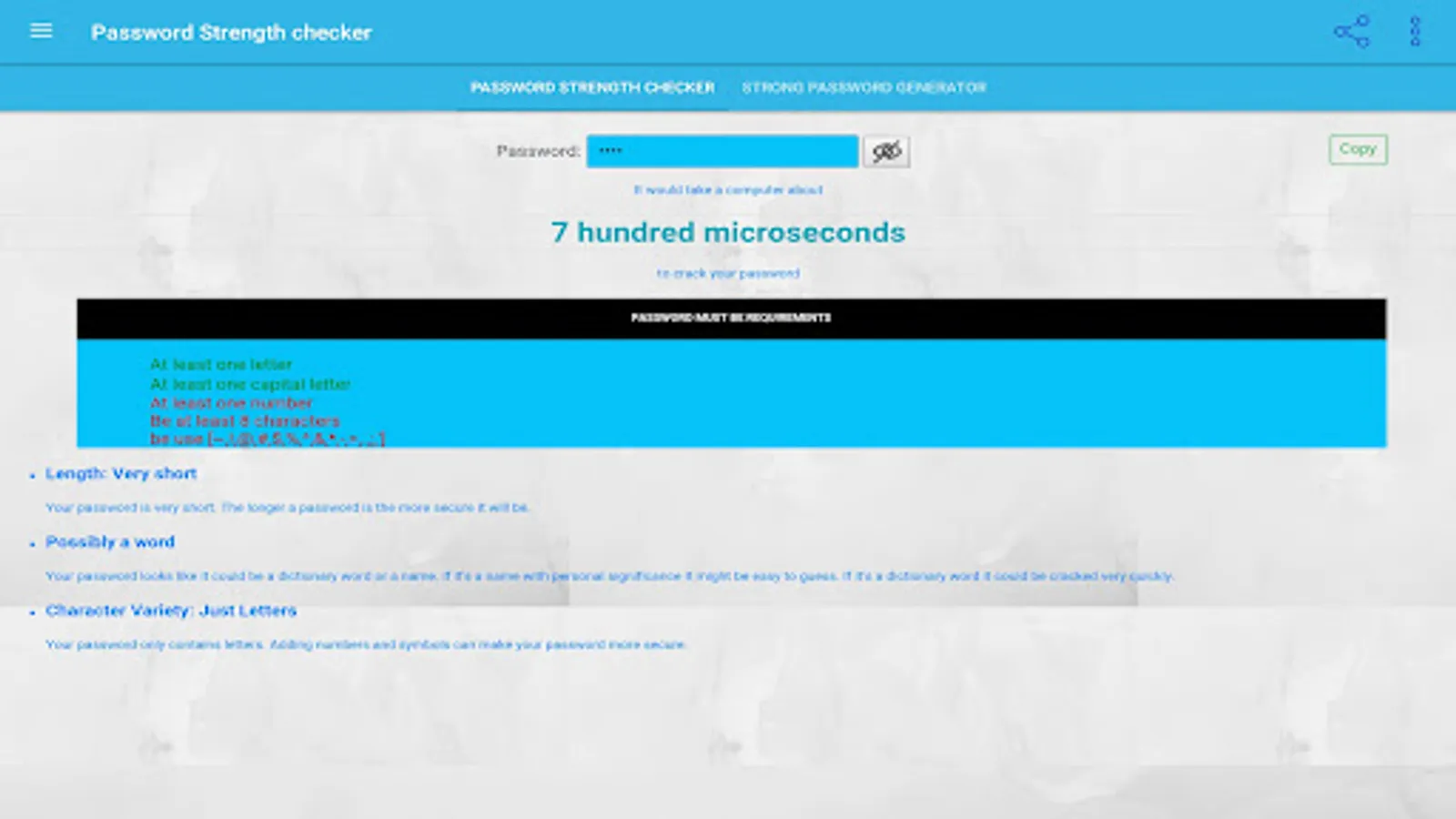 This application is not perfect and it is meant to help users just to learn how to create stronger passwords.