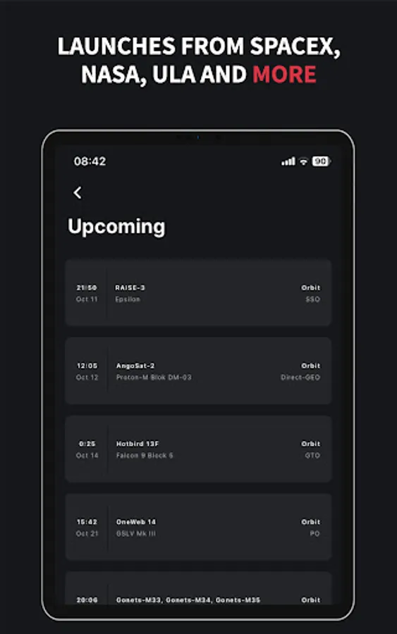 Upcoming Launches from SpaceX, NASA, ULA and more.