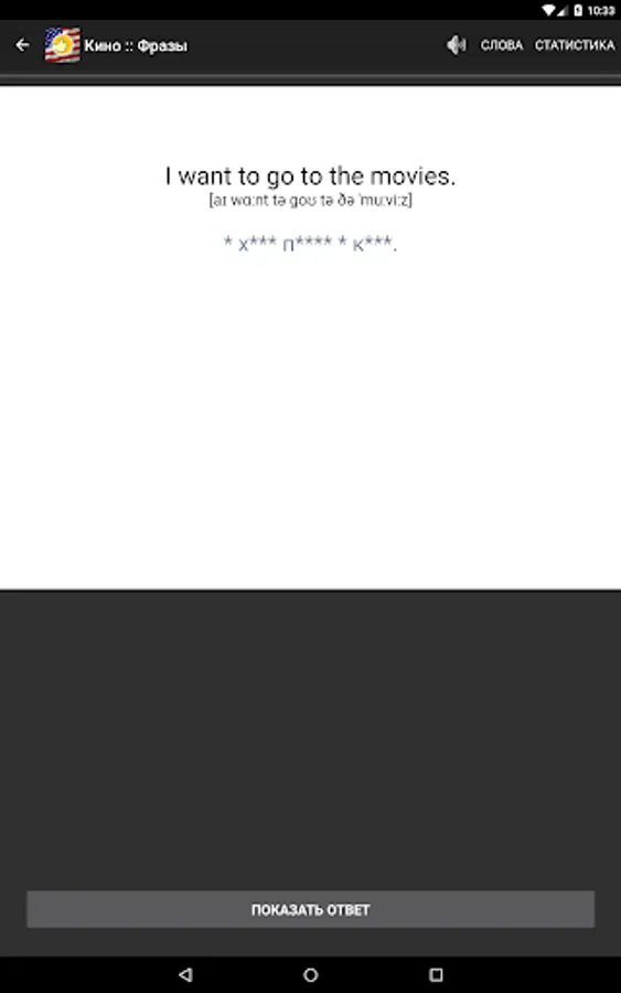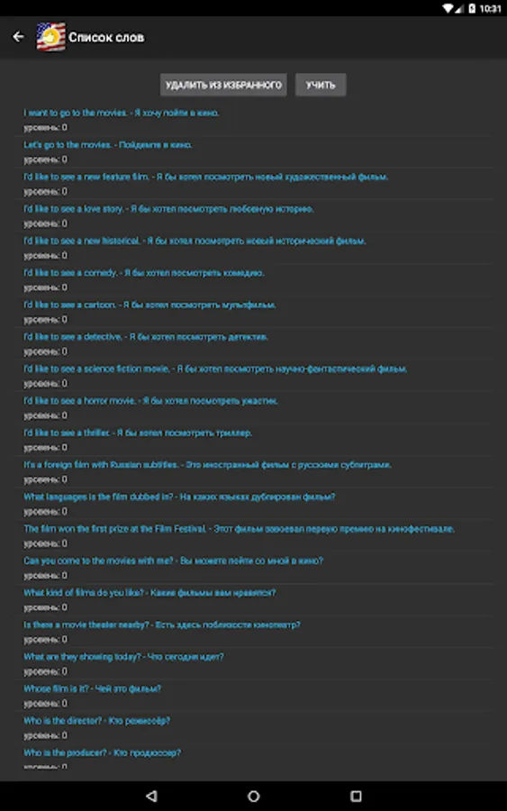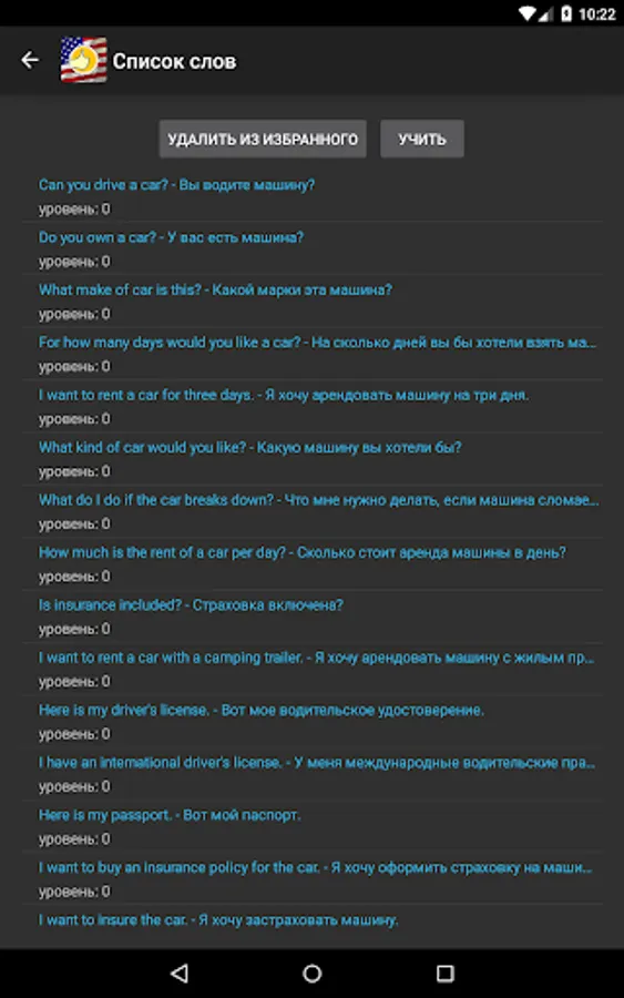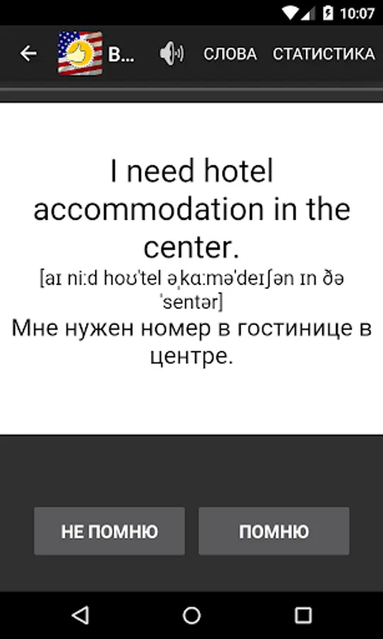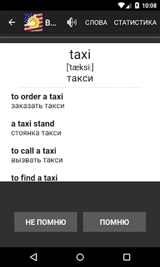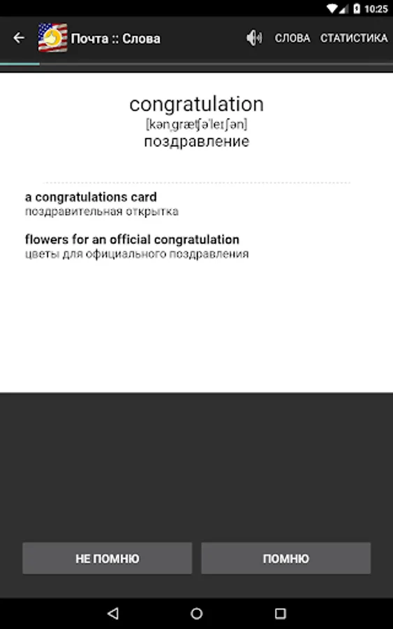 You learn theme voiced speech. In addition, each word has a transcription and a number of examples of use.