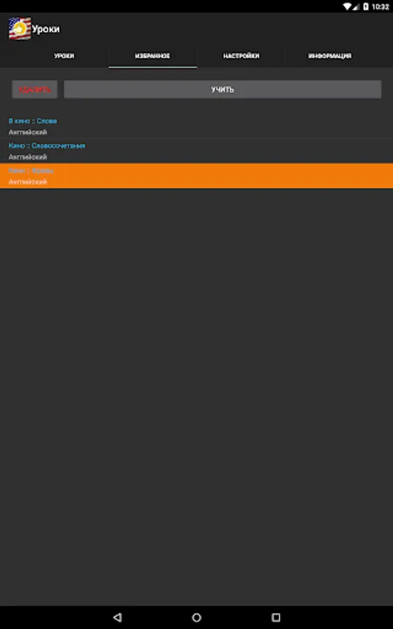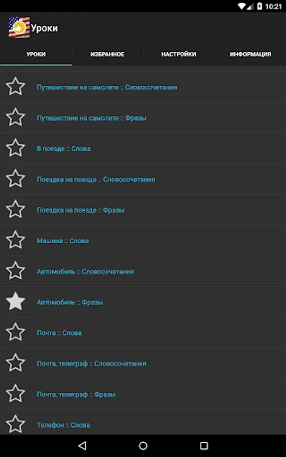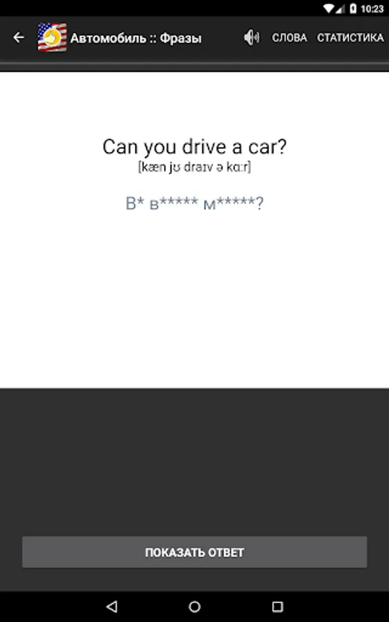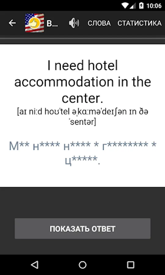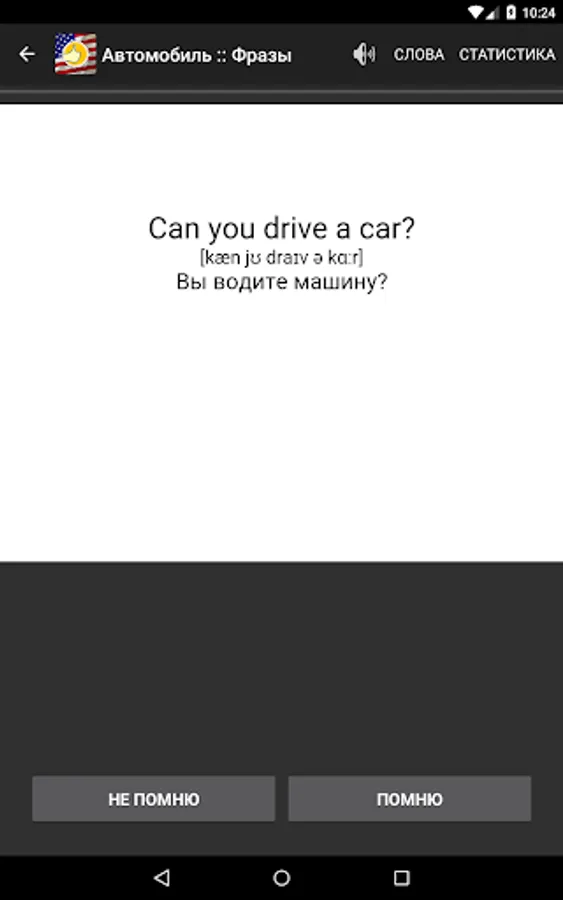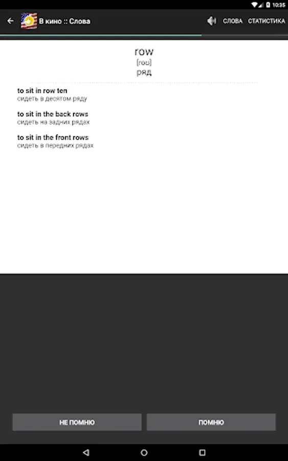 You learn theme voiced speech. In addition, each word has a transcription and a number of examples of use.