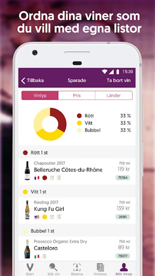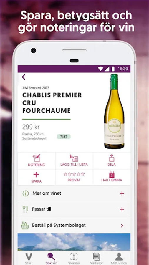 You can quickly find the right wines via the smart search function. If you want to know more about a wine bottle, it is easy to scan the label with the mobile camera and check what it is (provided that it is available in Systembolaget's range).