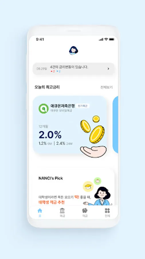 Nancy is a financial information service that stands for 'financial product editorial shop'. Nancy started out with the intention of providing financial information that will help you practically in your life. We live by missing out on large and small interest income without realizing it. The interest rates for regular deposits and time deposits are different, and the interest rates for commercial banks and savings banks are different. These small differences result in large differences in interest income. Nancy compares, analyzes and introduces savings information necessary for our lives. Turn on the app and check out today's top interest rates. You can also check how to open a non-face-to-face account through mobile. We hope that Nancy can help you in your savings life in the future.