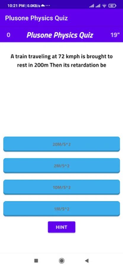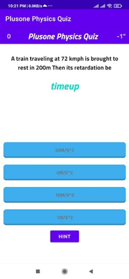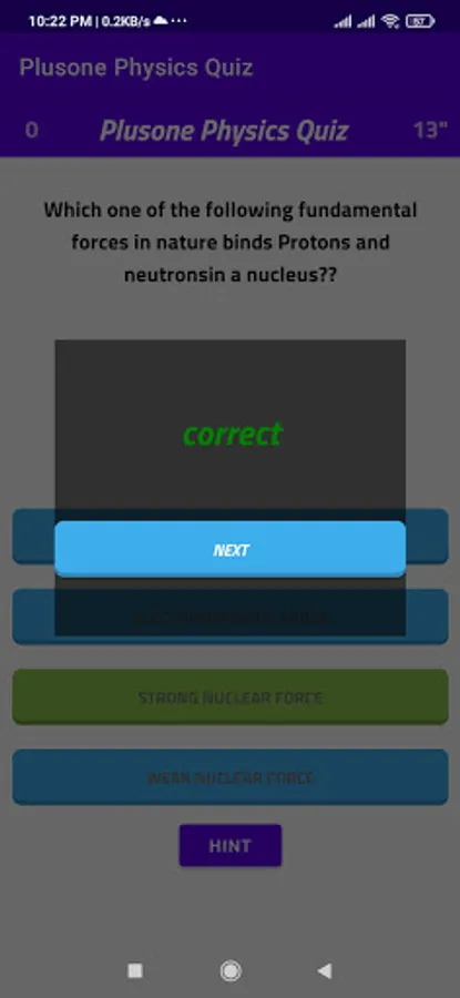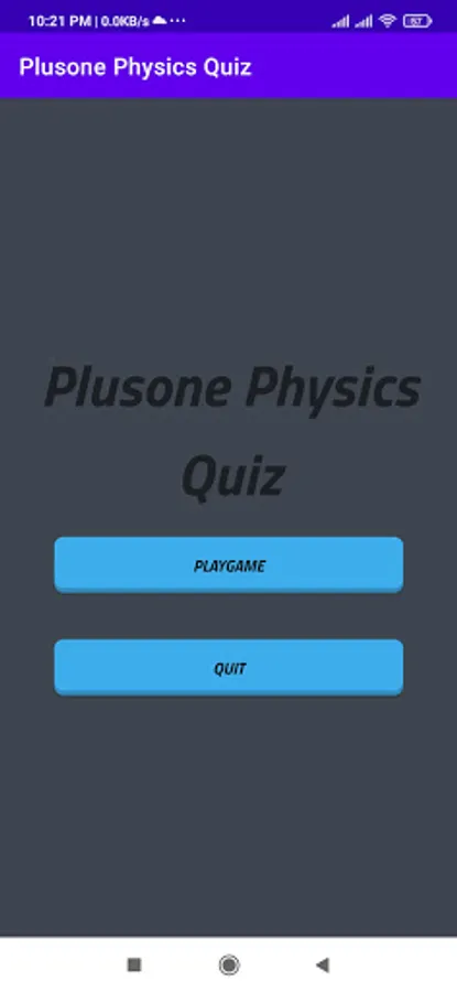 It is a physics objective game app for self learning. There are a set of objective questions with four options. The player chose the correct answer open a window next question else play again window opens. If he don't chose answer in the given time time up window opens and play again. The aim of the app is to chose correct answer in a given time. If he completed all answer correctly game won window appears. The powers are represented by ^ symbol. division by / and some formula can be written in above symbol.