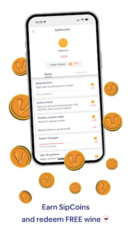 You Sip, We Tip. Earn SipCoins by creating videos, rating wines and inviting friends etc to redeem FREE wine gifts.