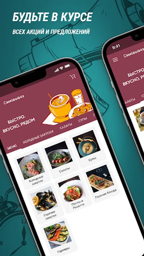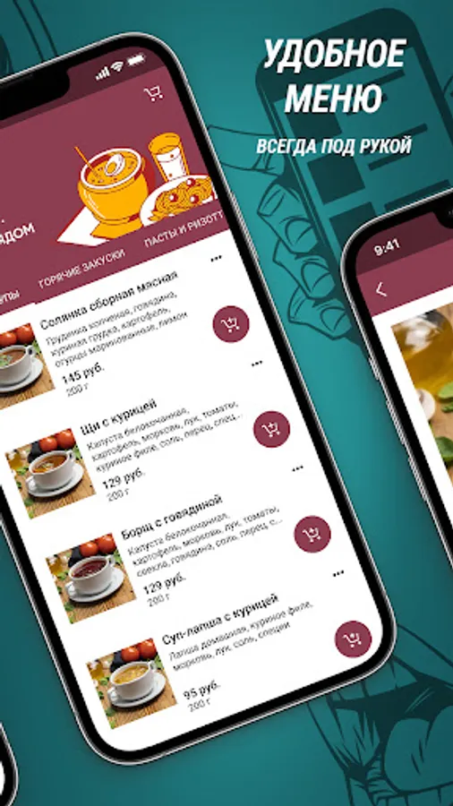 You can order ready meals through the mobile application. It is enough to choose the method of receiving the order, add the dishes you like to the basket and specify contacts.