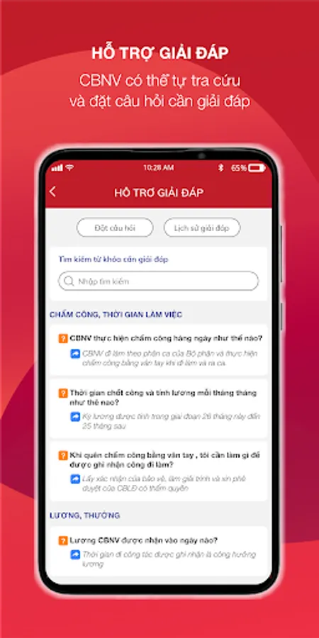 - Add the answer support feature, view frequently asked questions & can ask questions directly to leaders and human resources