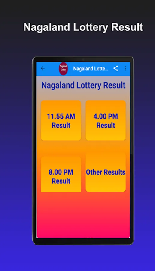 Nagaland Lottery Result is a light weight android application used to check the Nagaland State Lottery Results. This app can be used to check the 11.55 am result, 4.00pm result, 8.00pm result in every day. Live and old results of Lottery Sambad / Dear lottery results can be checked by this app.