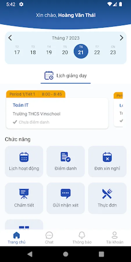 Mobile application supporting teachers to track their own teaching schedule at Vinschool inter-level schools.