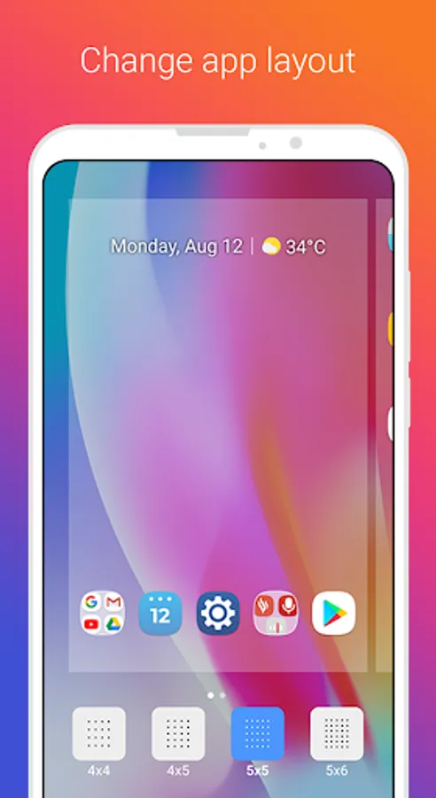 • Fully customize your home screen by grouping or moving icons, changing the shape of all icons and folders, changing the grid layout of applications on your home screen.