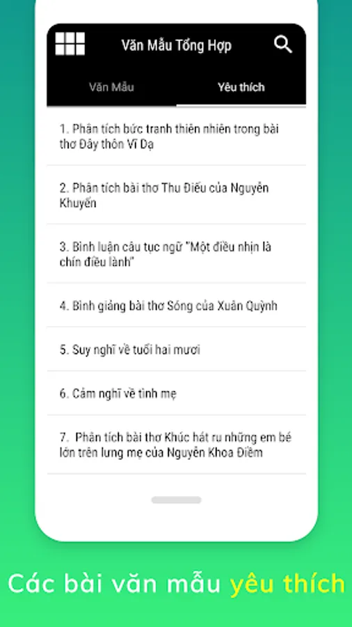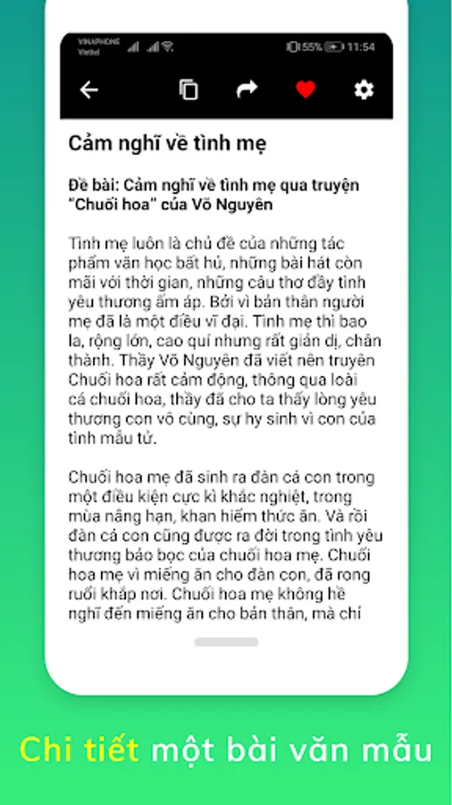 Composites: Allows you to save good writing. There is a mode to copy the entire text of the article to share with friends and relatives (Help your friends learn good writing)