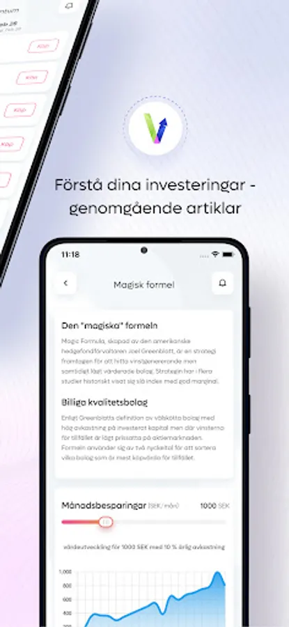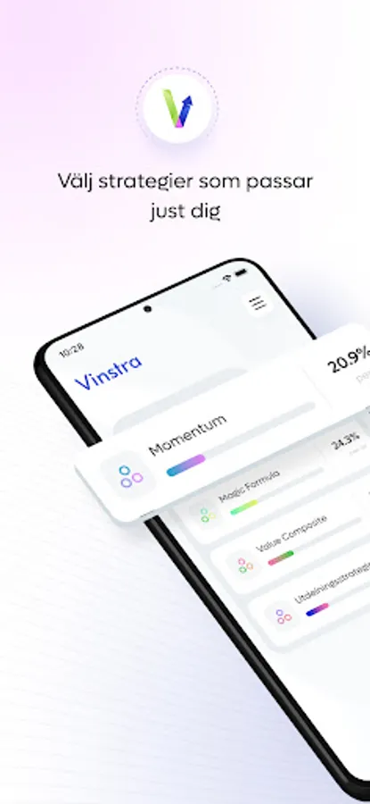 We make it easy to invest smart. With Vinstra, you get access to some of the best and most well-known quantitative investment strategies that have been developed. Including Magic Formula, Value Composite and Momentum. In addition, exciting strategies such as Tiny Titans to find the cheapest small companies on the stock exchange. Vinstra helps you sort out the best stocks to own right now according to these strategies and reminds you when it's time to make changes to the portfolio. Everything to make your share savings as easy as possible and that you should have the opportunity to beat the index.