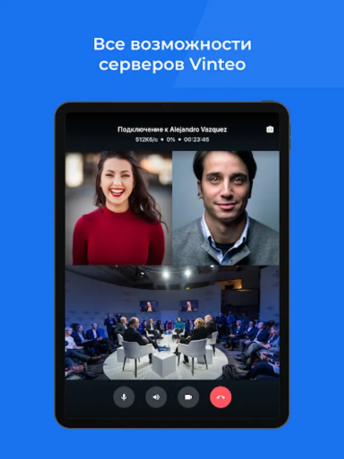Vinteo is the mobile video conferencing client that works on Vinteo video conferencing solutions. It allows you to participate in HD video conferences (up to 720p).