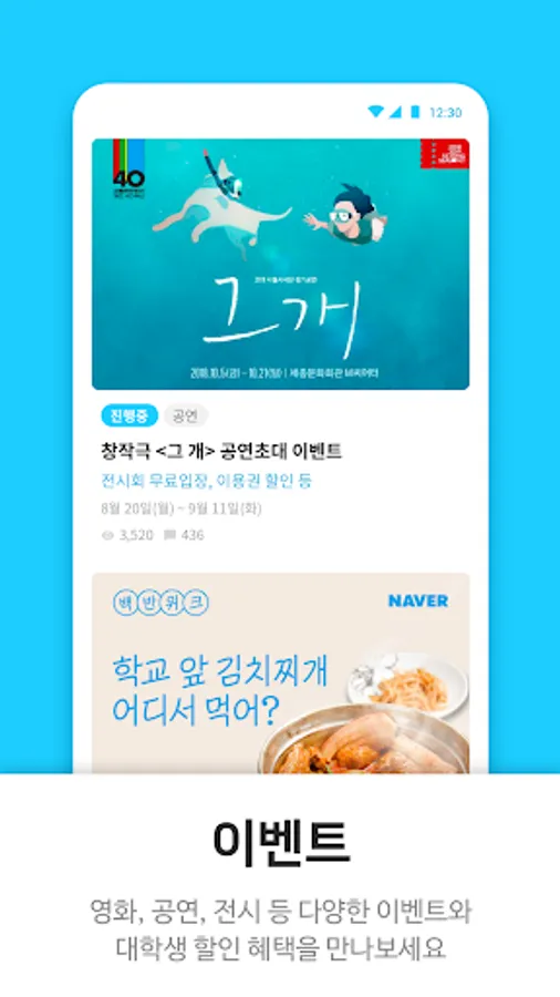 Find a variety of events, including movies, performances, exhibitions, and college student discounts.