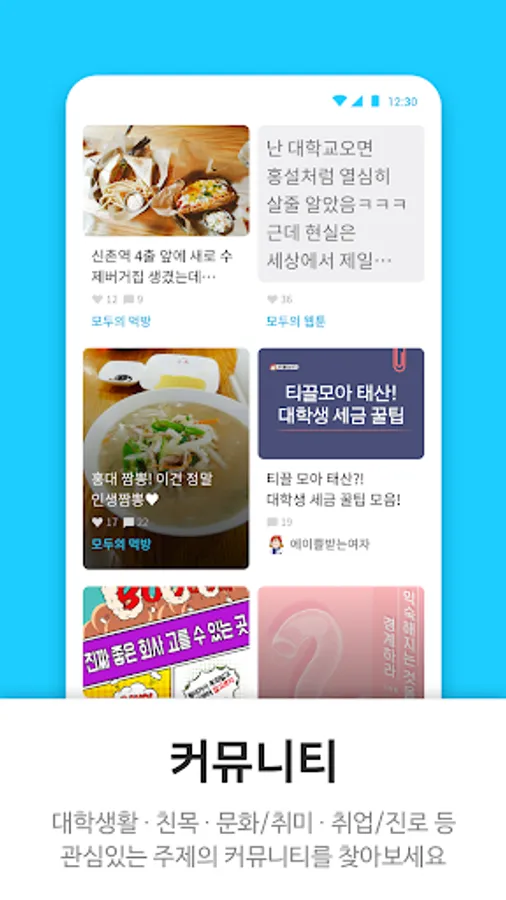 Find a community on topics of interest, such as college life, friendship, culture / hobbies, beauty / fashion, employment / career.