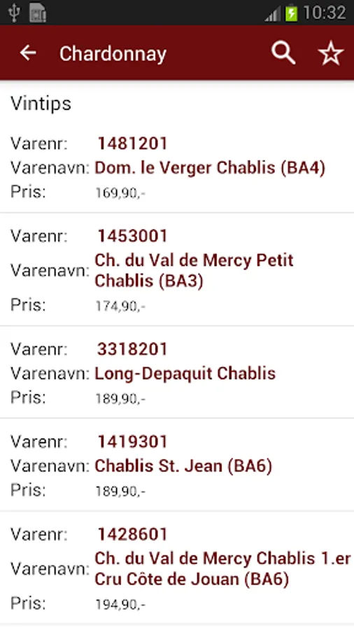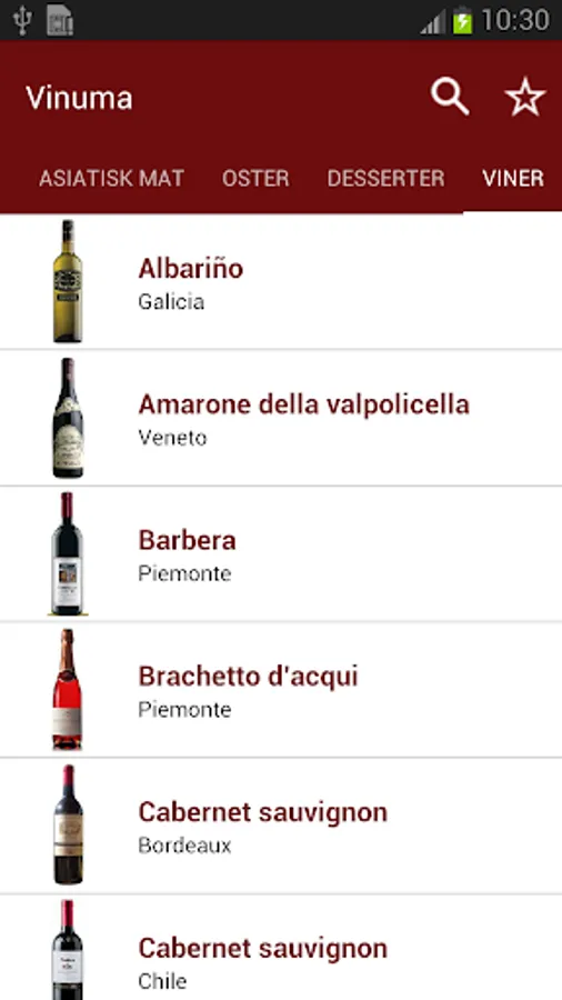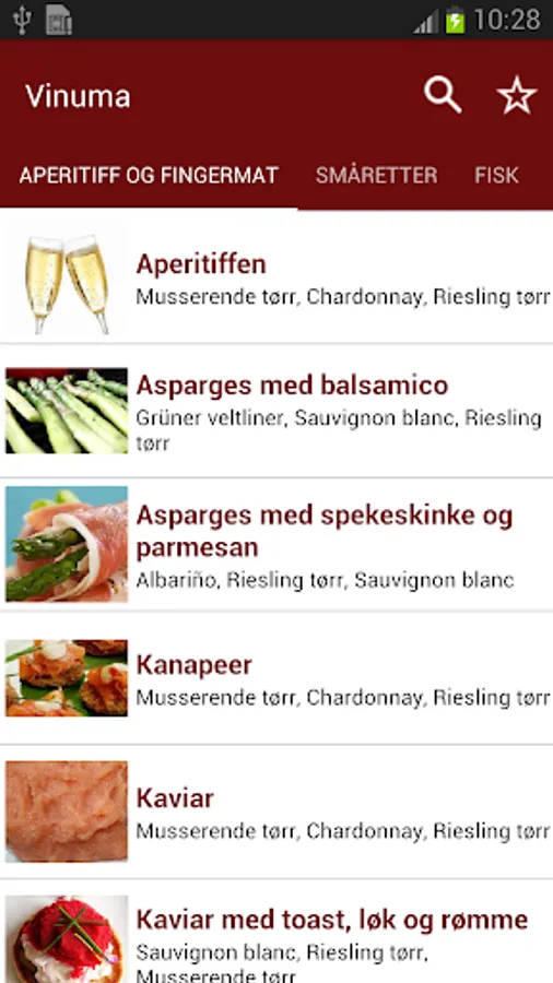 Vinum also has a search function where you can find wines to your favorite dishes or dishes for your favorite wines. You can also read about wine and wine area. You can even retrieve the proper serving temperature for your wine.