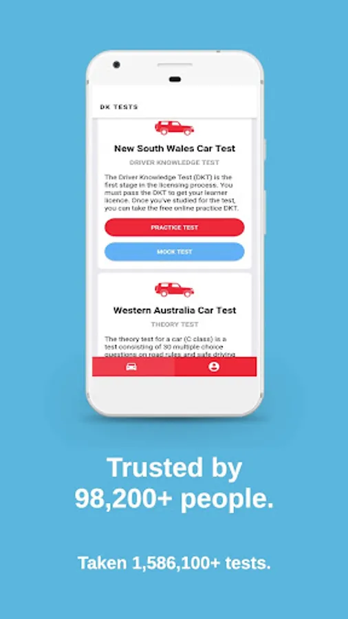 DK Test is a driving theory test practice site for car/rider knowledge test questions to get a driving license in Australia. People are using DK Test to increase their chance of passing the driver knowledge test on the very first try.