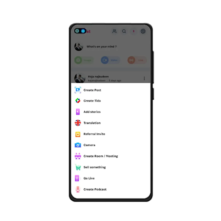 User can post Tida (short video), video, image & text with #hashtag & @mentions.