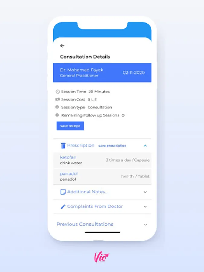VIO Clinic is a mobile health application through which you can maintain your and your family health. The application will enable you to do the following