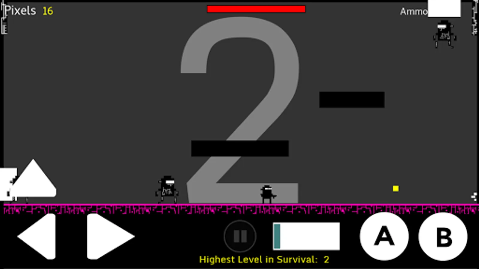 Pixel Hero Survival is a retro platform shooter with colorful lights and explosions. Your goal is to make it through each level and blast everything in sight while doing it. As you blast everything in sight, you can collect the pixels left behind by fallen enemies to buy health packs and upgrades.