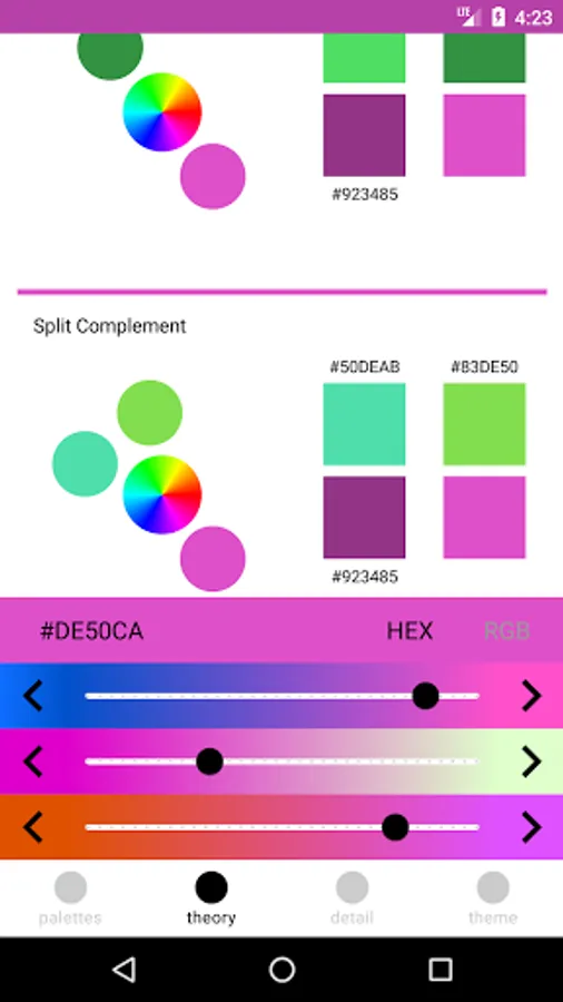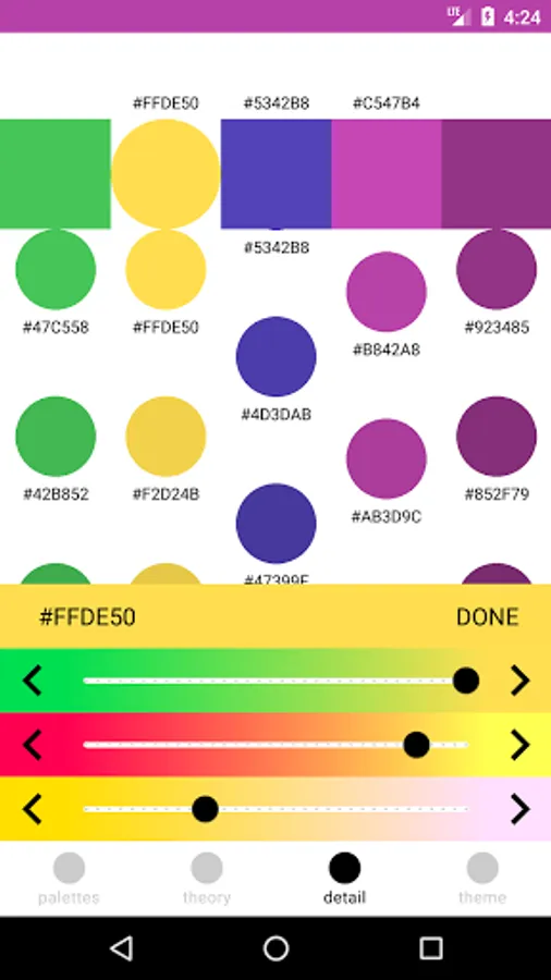 Quickly create and share color palettes with the color wheel and color theory principles.