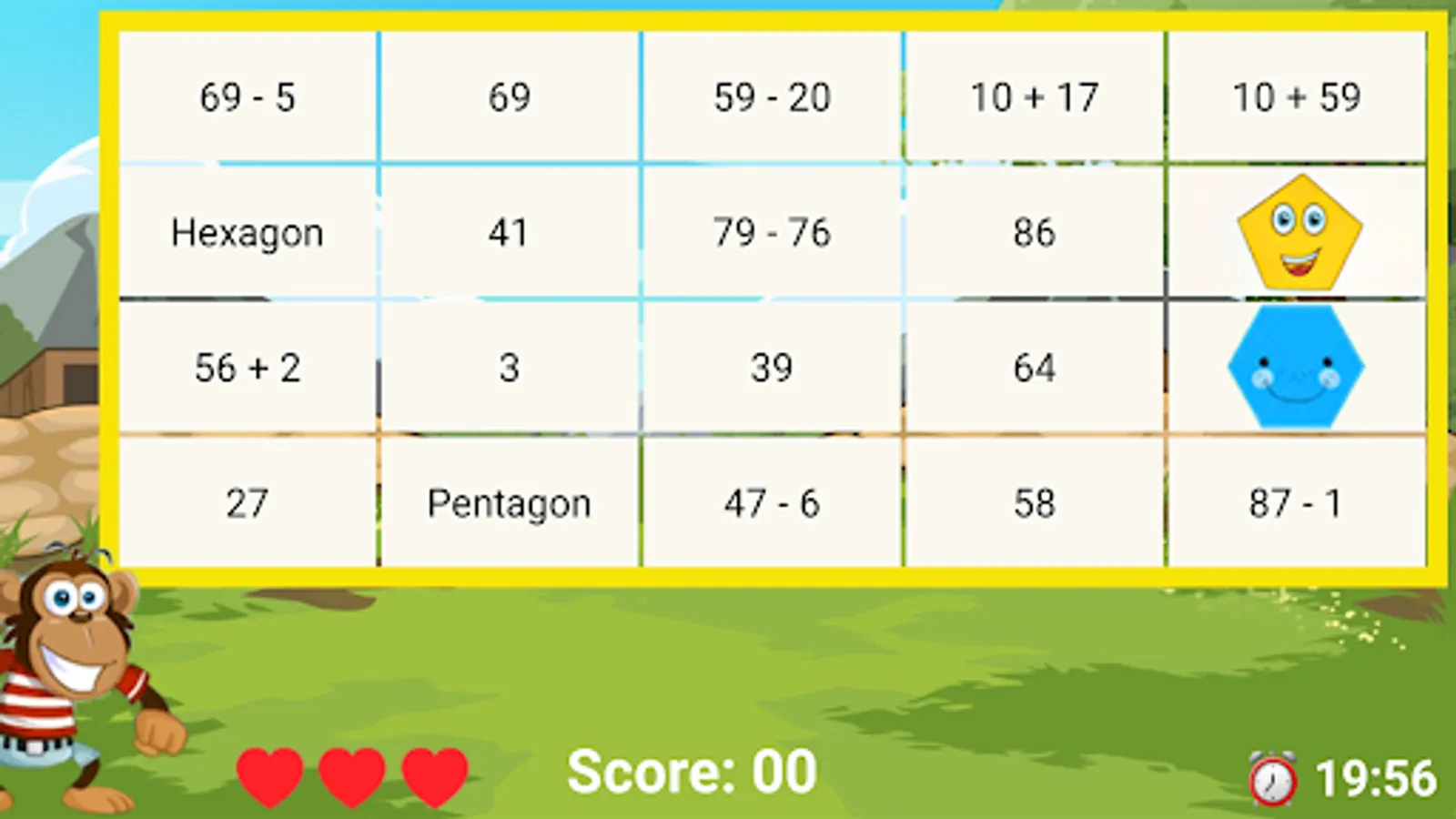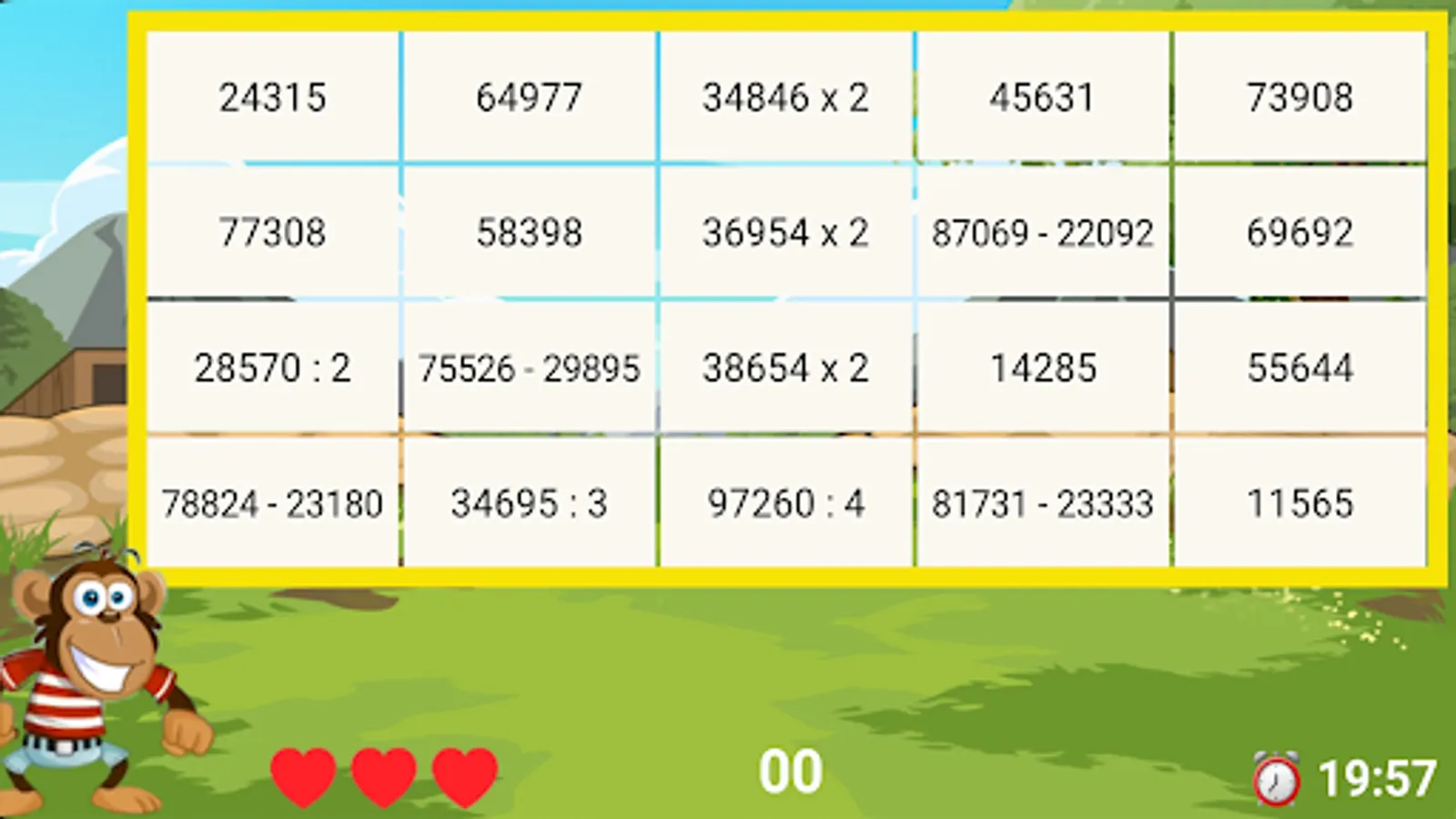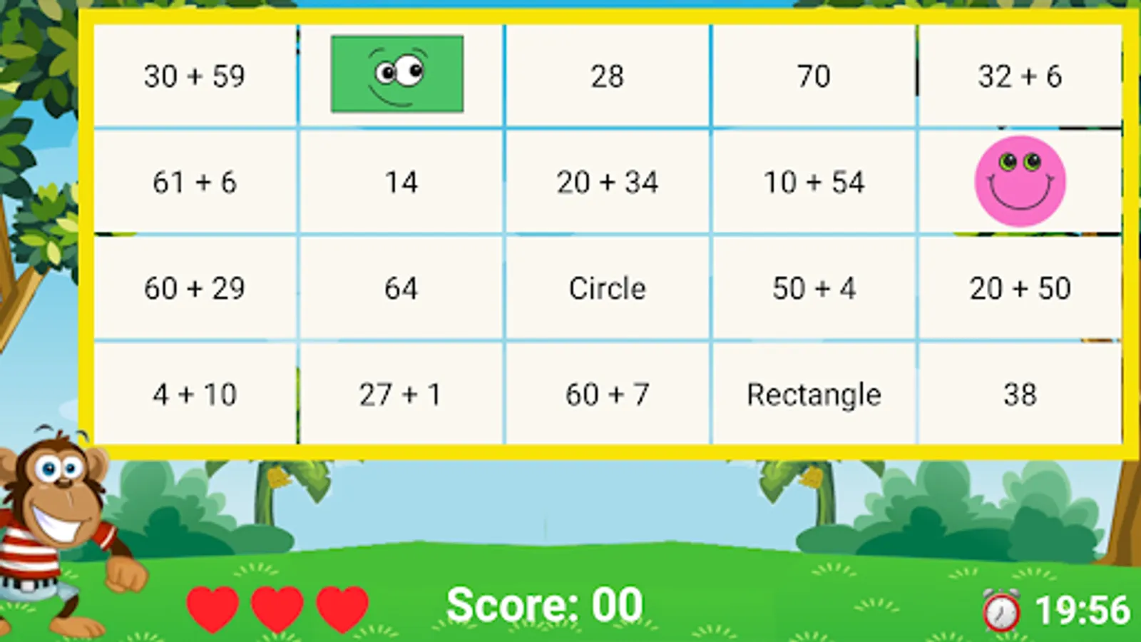-. Lesson 3 Smart Monkey : You help monkey choose its hook by choose the number or expression value in the table is equal to the numerical value or expression is written on the hook.