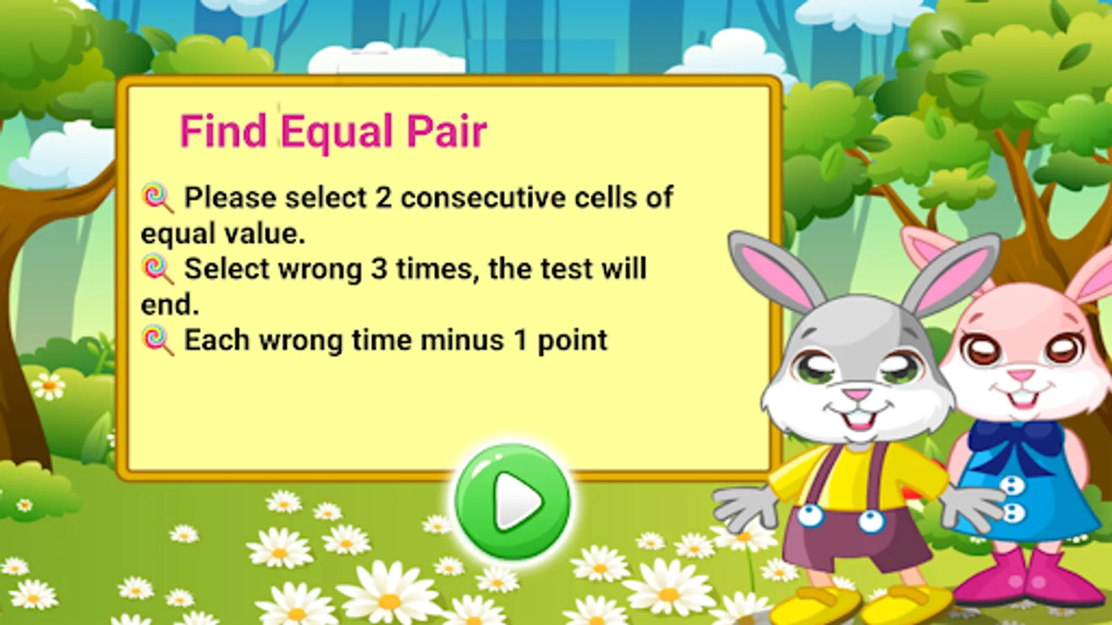 -. Lesson 2 Find pairs of equal - Violympic math 1 : You select successive cells which have same values to removed them from the table. If you select wrongly more than 3 times, your test will end.