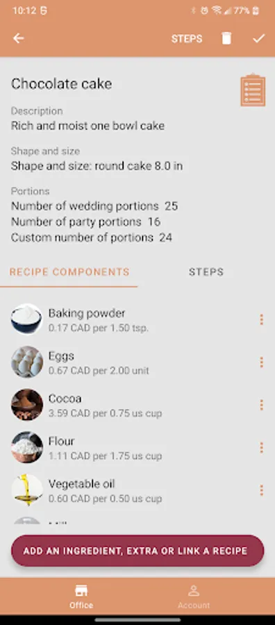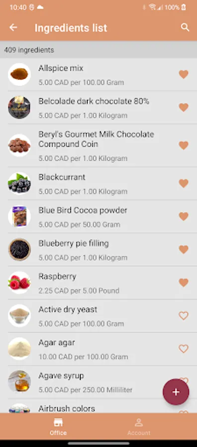 -Update the list of ingredients with latest prices and all your recipes will be updated automatically.