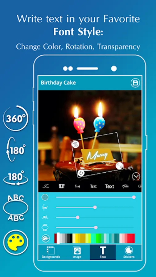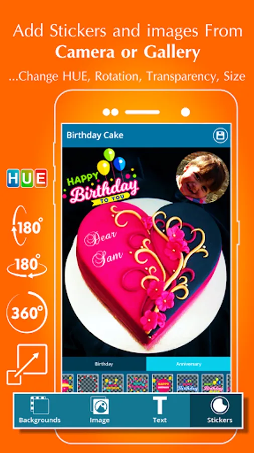 🎂 Photo & Text editing tools to set stylish text and photo on the cake.