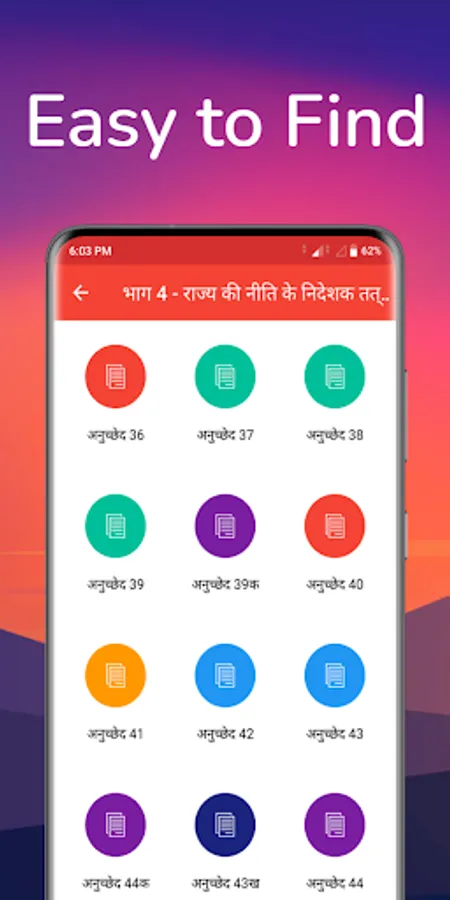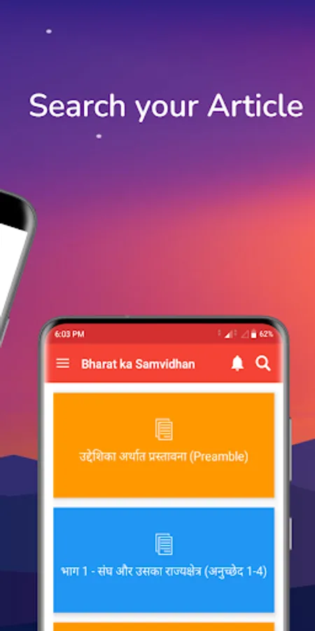 Bhartiya Samvidhan's application contains information about the constitution of India in the Hindi Language.