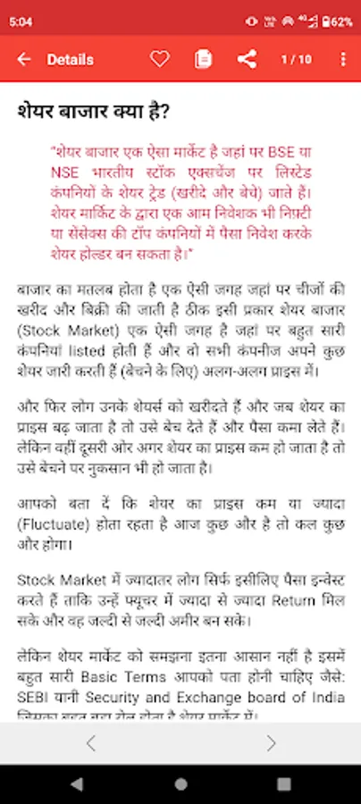 Share Market Education Hindi App is a complete share marketing course & guide in Hindi in which you will learn stock/share market in detail. this app has brief details about the Indian stock market which is enough to make you successful in the share market.
