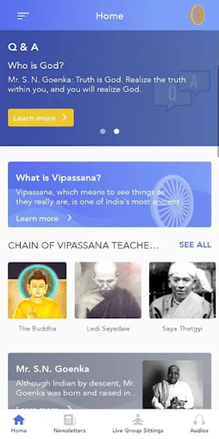 For decades now, the words of Goenkaji have inspired masses to not only get introduced to the technique but also to go deeper in their meditative practice. This app aims to make Vipassana Meditation instructions and media available globally to all so that all benefit from this wonderful technique.