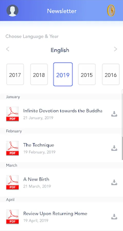 App provides access to VRI newsletters that are published in various languages each month. Various audio files of chantings, dohas, mini-anapana are also made available. For students who have completed a 10 day course in this tradition, they can access additional audio files for the complete 10 day discourse and have access to One day courses and Group sittings held in their area to enable them to keep up with the practice. They can also make donations to VRI via the app.