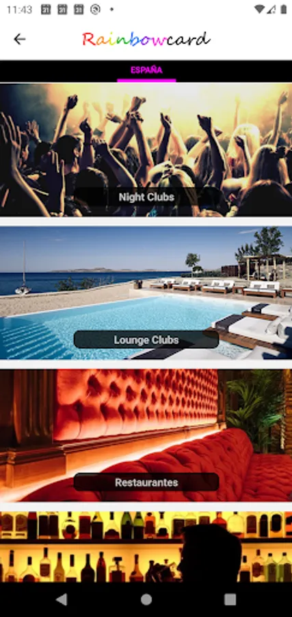 From now on your days will be easier and more enjoyable with your new Rainbowcard, it's the only App that you can have your VIP accesses to all your favorite establishments, shopping centers, clubs, lounge bars, restaurants and hotels on your phone.