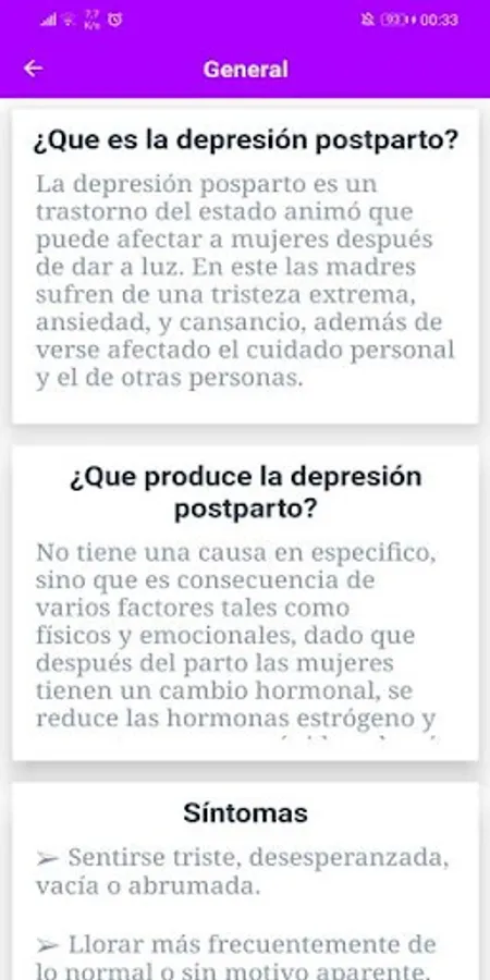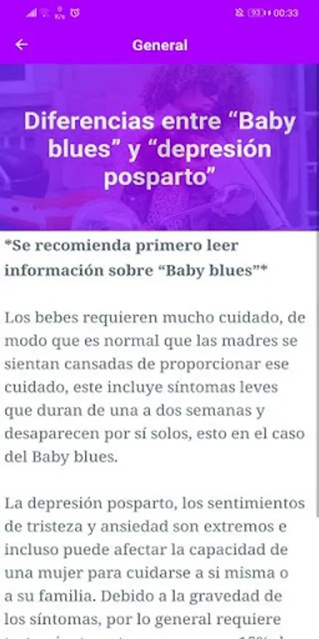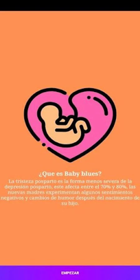 Topics such as postpartum depression, Baby blues, Self-improvement and Activities to promote happiness are covered, if you have doubts or do not know about any of these topics, do not hesitate to download this app.