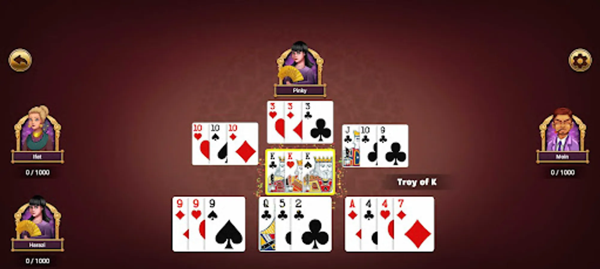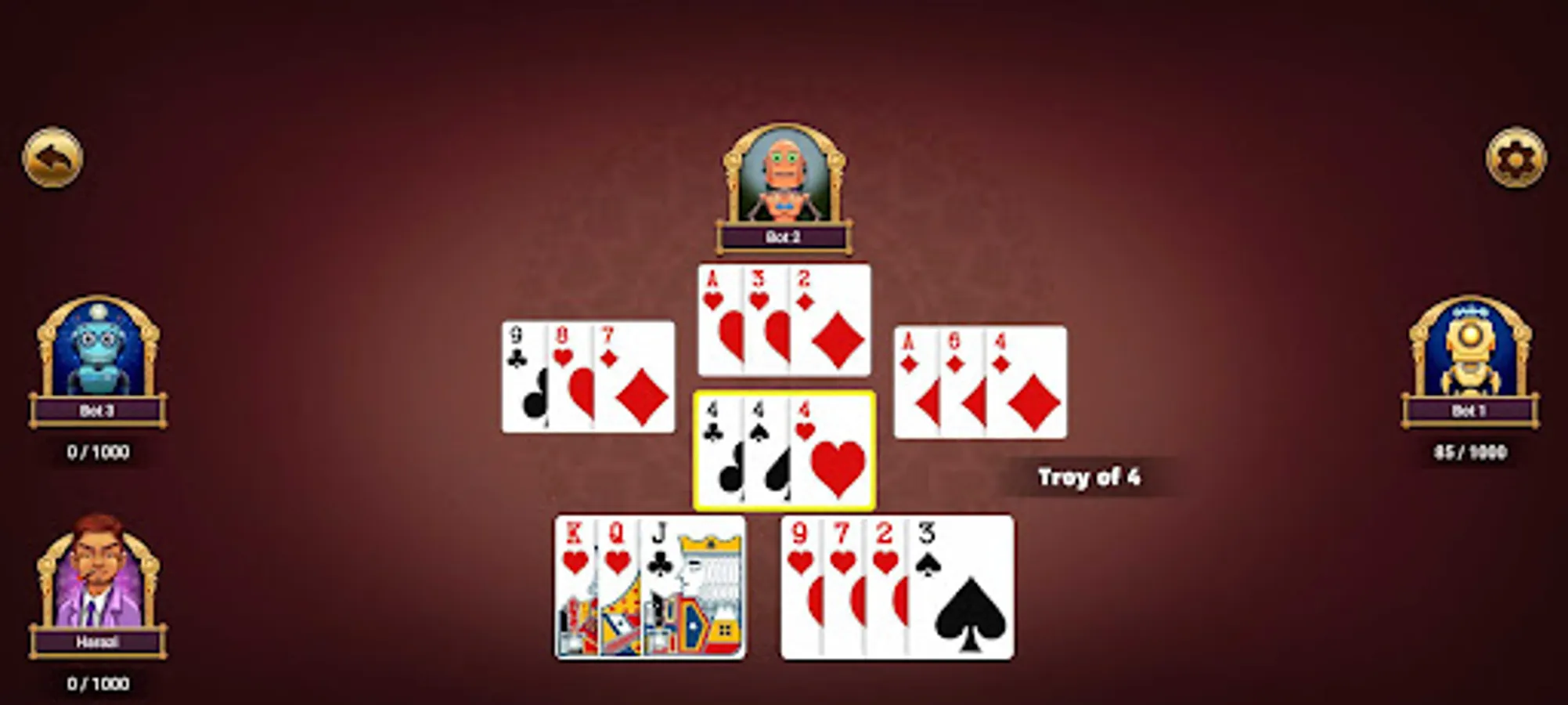 Hazari Royal Gold card game has very special features. You will have very challenging BOTs and also you can challenge random players. Play both offline and online anywhere anytime fully free. We have a Sort Option that gives you hints to make your best leads. We have an Individual Card Sector System where you can easily track your card sequence.