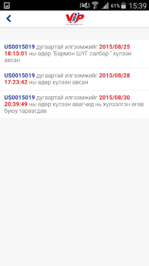 Vip Post компанийн ачааны байршил, статус шалгах гар утасны аппликейшн.