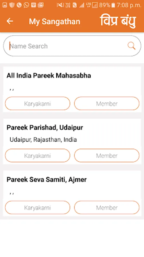 This is a to b, a to c and b to c app, through this you can contact your sangathan, relative and their relative