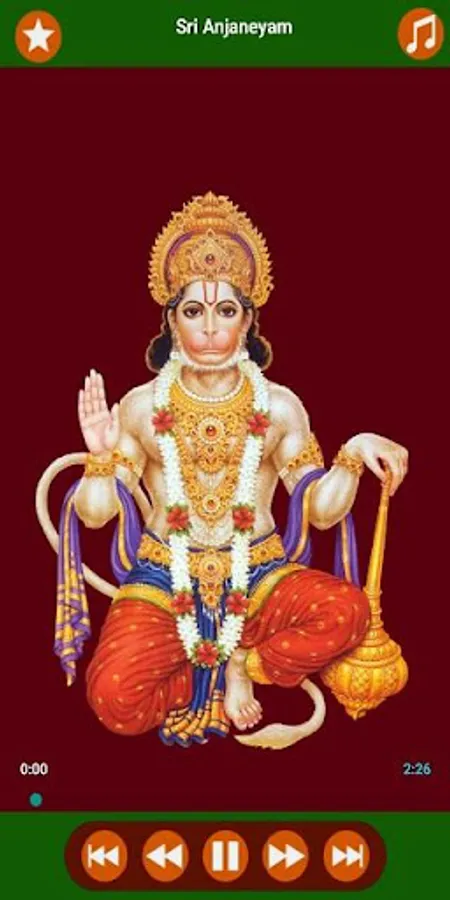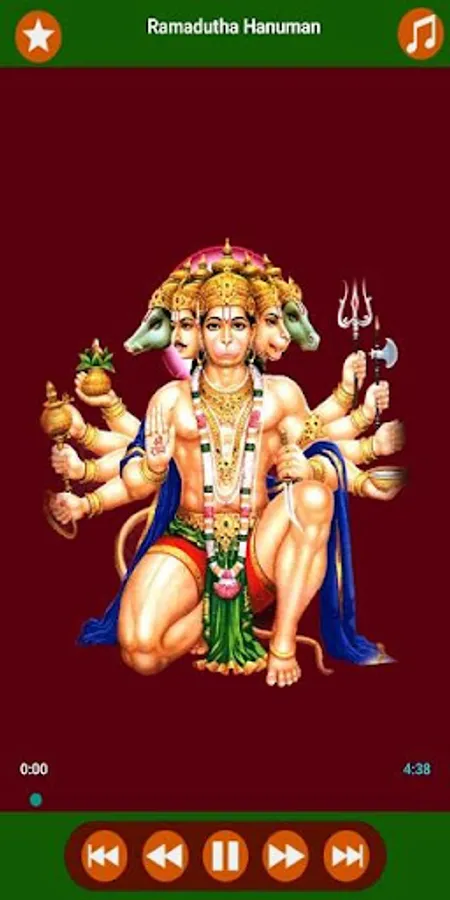 Anjaneya Stuthi,Hanuman Stothram,Ramadutha Hanuman,Sri Anjaneyam,Hanuman Chalisa,Hanuman Suprabhatham, are the songs available in this application