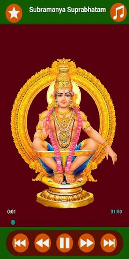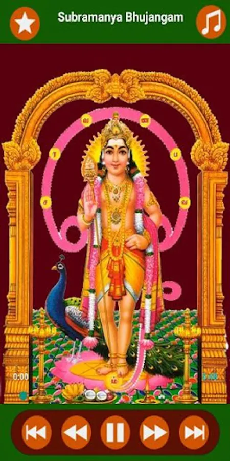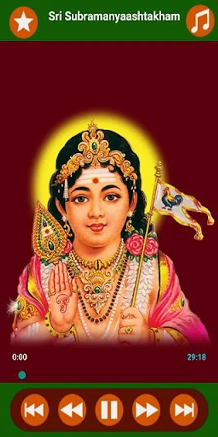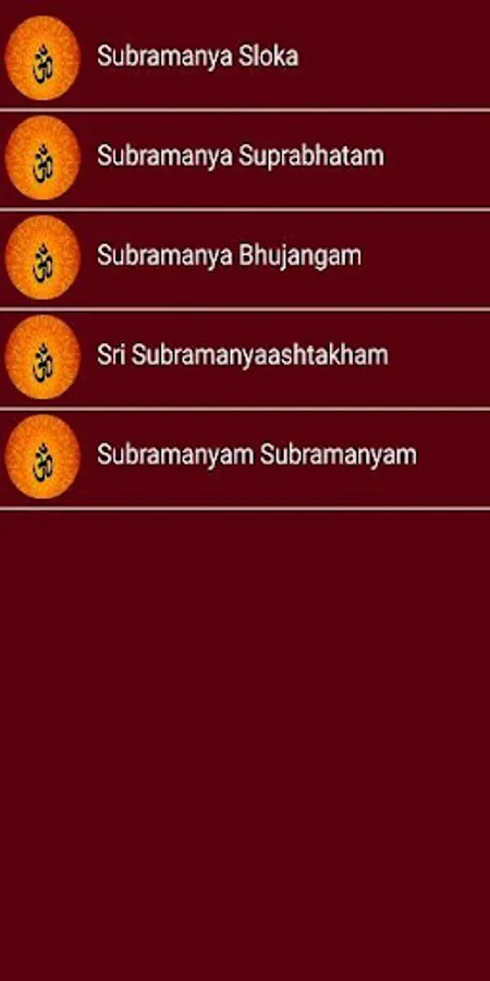 Subramanya Sloka,Subramanya Suprabhatam,Subramanya Bhujangam,Sri Subramanyaashtakham,Subramanyam Subramanyam, these are the songs available inn this application.