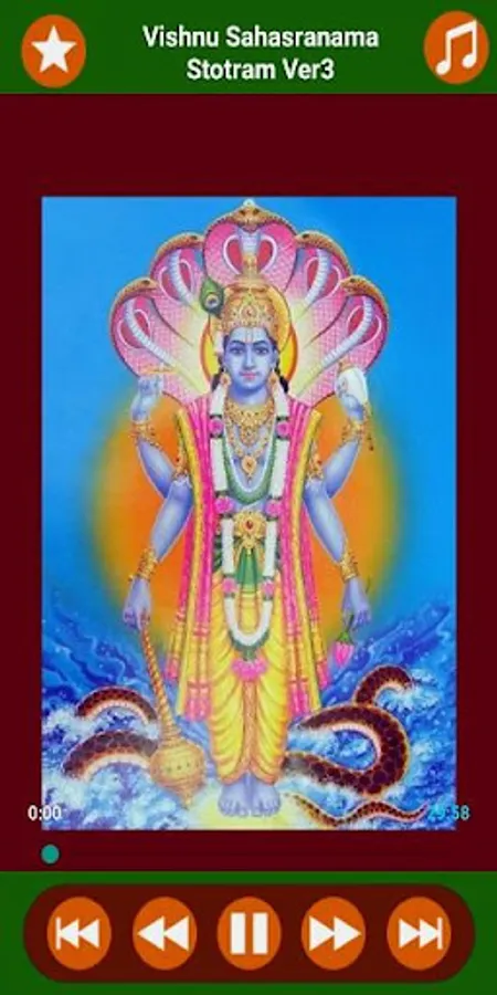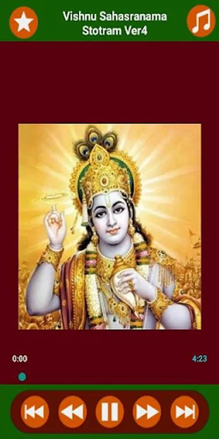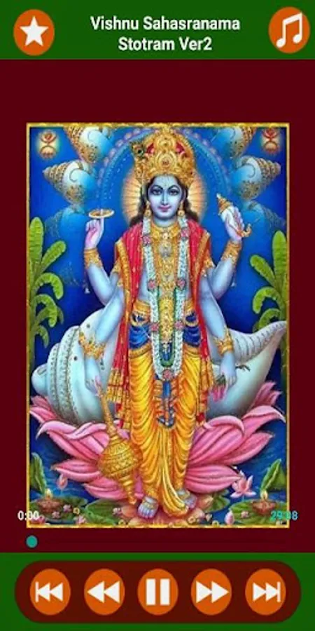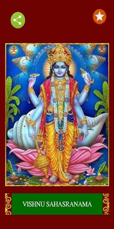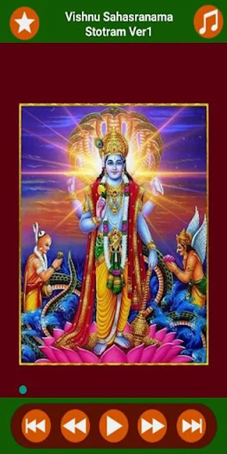 Vishnu Sahasranama Stotram Ver1,Vishnu Sahasranama Stotram Ver2,Vishnu Sahasranama Stotram Ver3,Vishnu Sahasranama Stotram Ver4 are the songs available in this application.