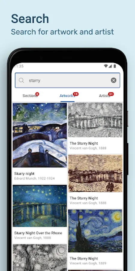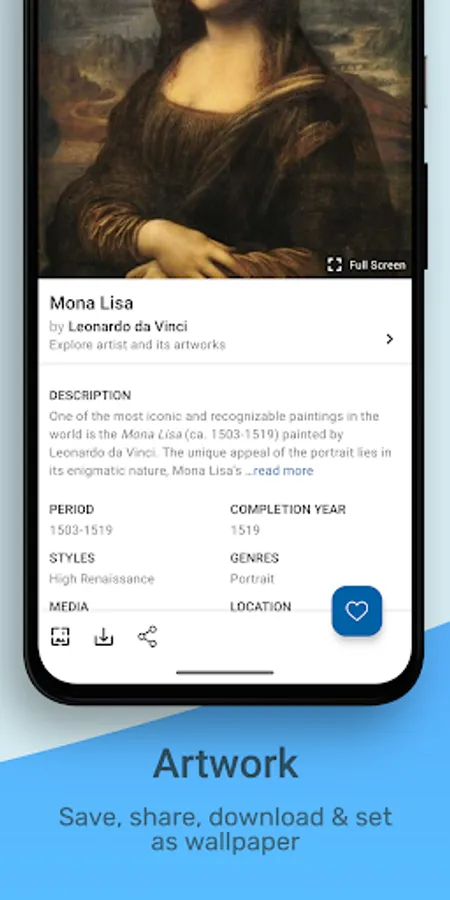💡 Art learning: The Artier app for culture and art is also a helpful art education app to learn art history and styles. Each artwork has info about the: