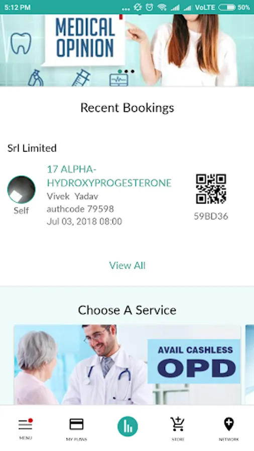 2. User Accesses the H3U application with their login and views the Medhealth card