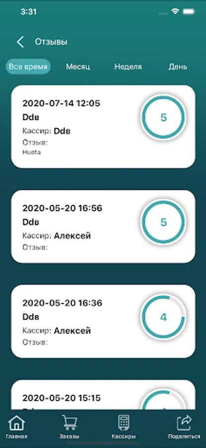 - Statistics on the turnover of each of the cashier and the company as a whole