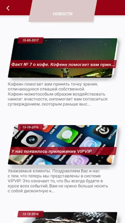 VipVip - is an application that contains all the necessary information about the company or the point of sale and allows users to get discounts at your favorite stores, saloons, cafes, etc. Also, each client of the recommendations of these institutions to other users receive bonus points, which can also be spent on partial or full payment for goods and services.