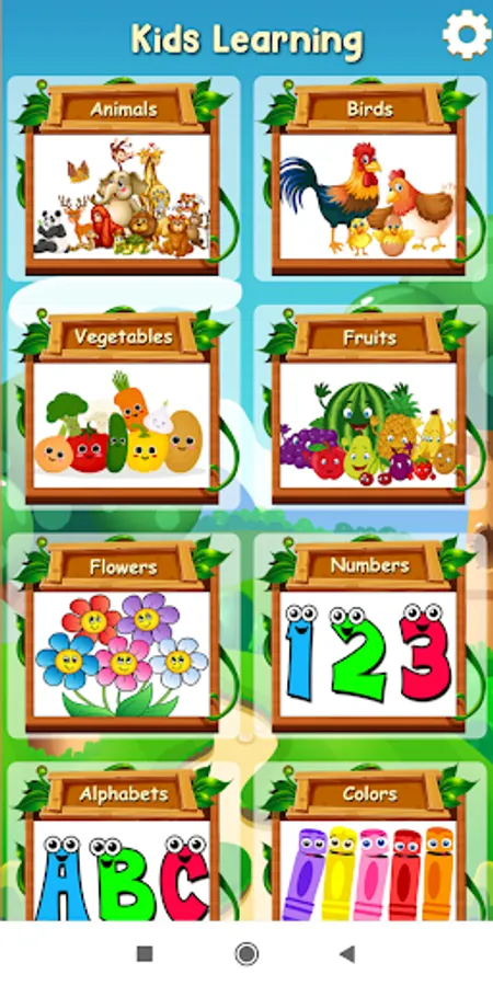 - Kids learn Animals, Birds, Vegetables, Fruits, Flowers, Alphabets, Numbers and Colors