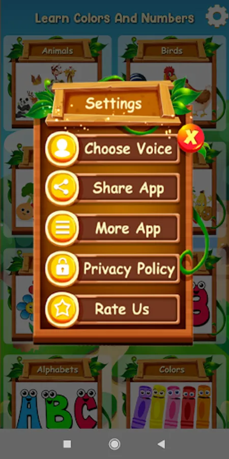 Kids Learning App contains basic words and education such as Learning Alphabet ABC / Letters, Learning Numbers 123, Learning fruits, Learning vegetables, Learning flowers, Learning colors type, etc.