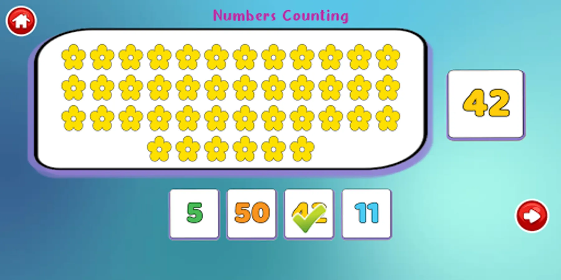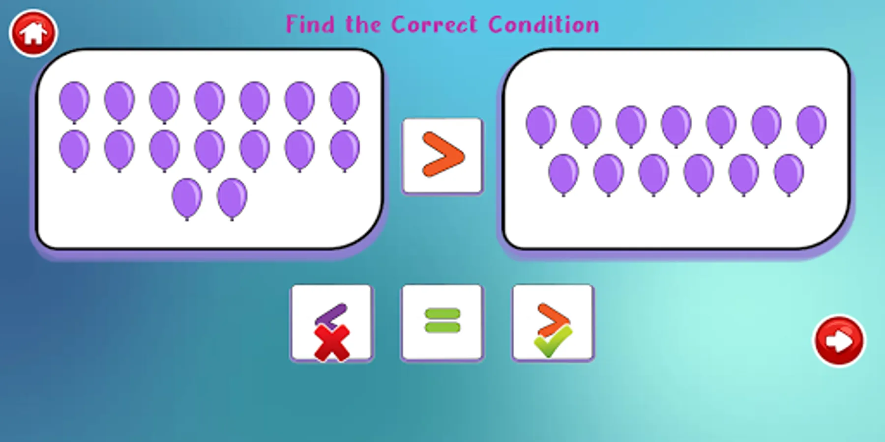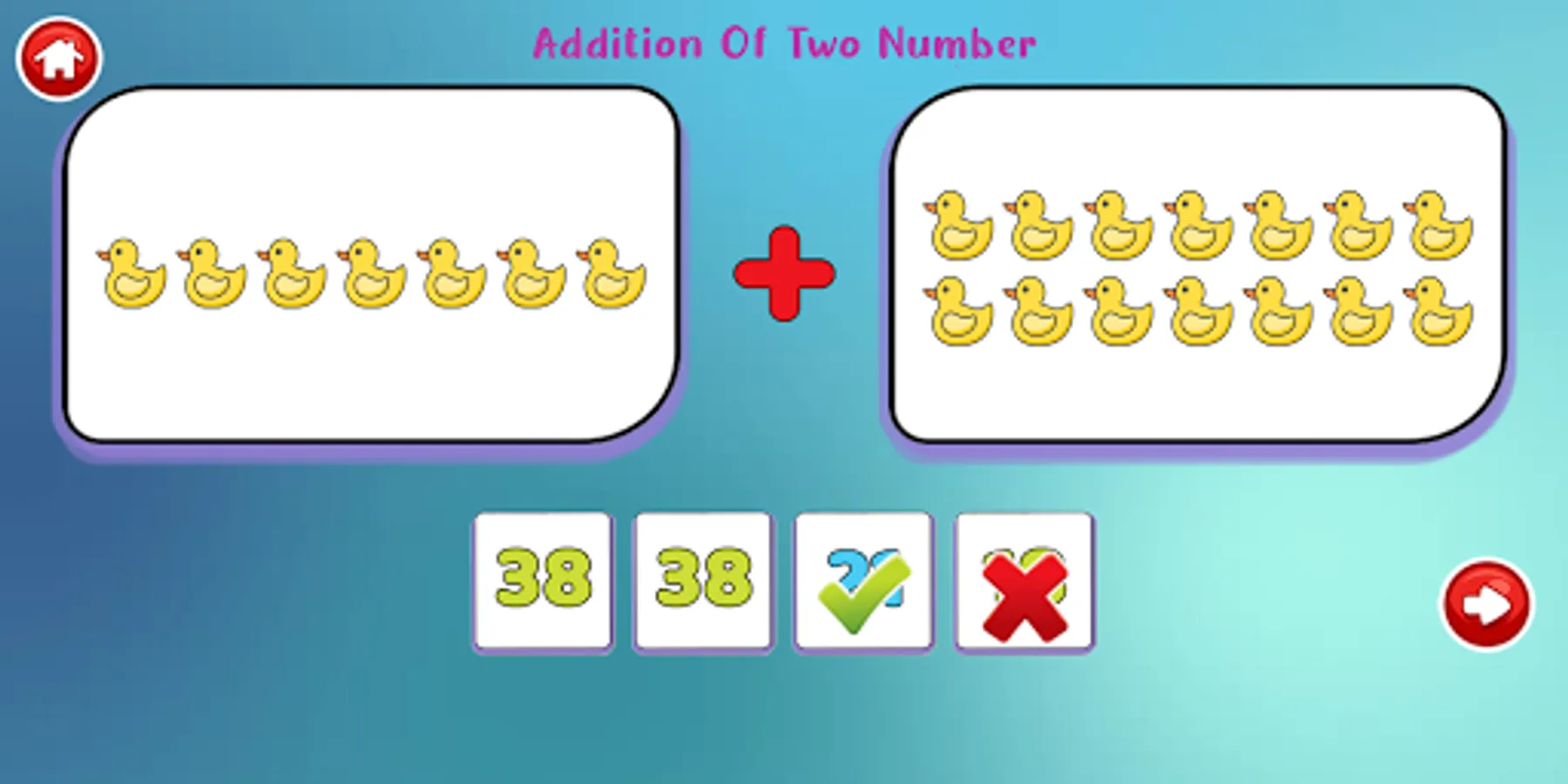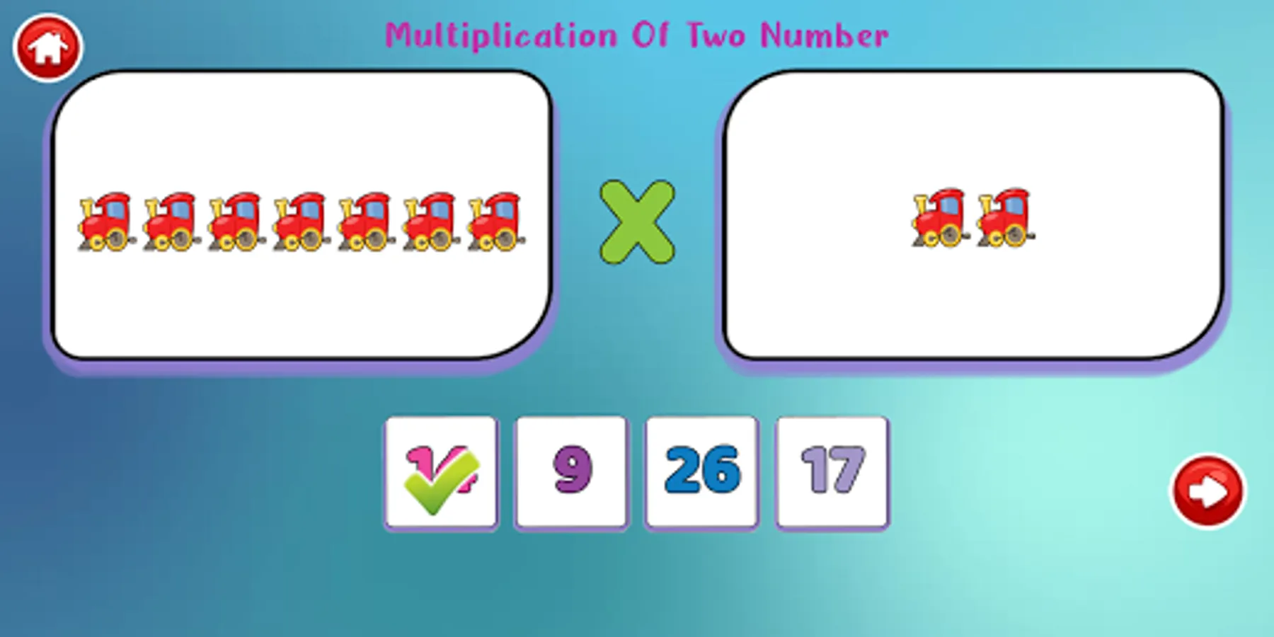 There is simple addition, subtraction, multiplication and division of picture images. Find the number of images, if plus(+) sign make addition, For minus(-) sign make subtraction, For multiplication(*) sign make multiplication and for division(/) sign make devision of that perticular number. Click on numbers to check answer is correct or not. For correct answer it show 'Correct', if answer is wrong, it show 'Wrong'. After correct answer 'Next Arrow' appears, click on next for next exercise.