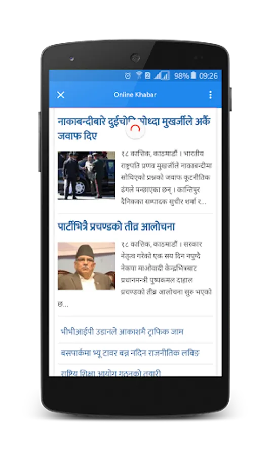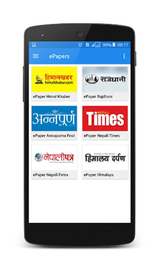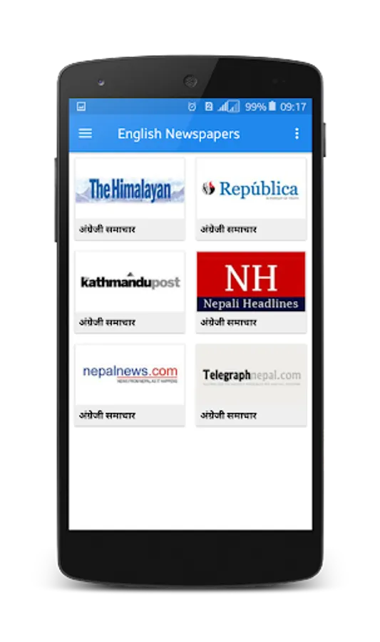 "News Nepal - Nepali Newspapers" is a nepali news app where you will able to read nepali and english news from nepali online newspaper and ePapers. From this nepali samachar or nepali news app you will read news from 50+ newspapers of nepal including Online Khabar, Kantipur, Nagarik News, Seto Pati, Annapurna Post, BBC Nepali, The Himalayan Times, News 24 Nepal, Ujyaalo Online and much more.